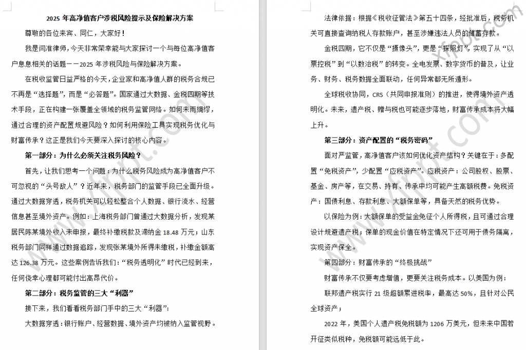 高净值客户涉税风险及保险解决方案19页(含演讲稿) 2025-04-24 法税 373 感谢【星夜】共享。如有侵权,请提供对应版版权作品登记材料,联系本站删除。 资源下载下载价格一年VIP专享仅限一年VIP下载升级一年VIP请先登录支持手机及电脑端下载 0