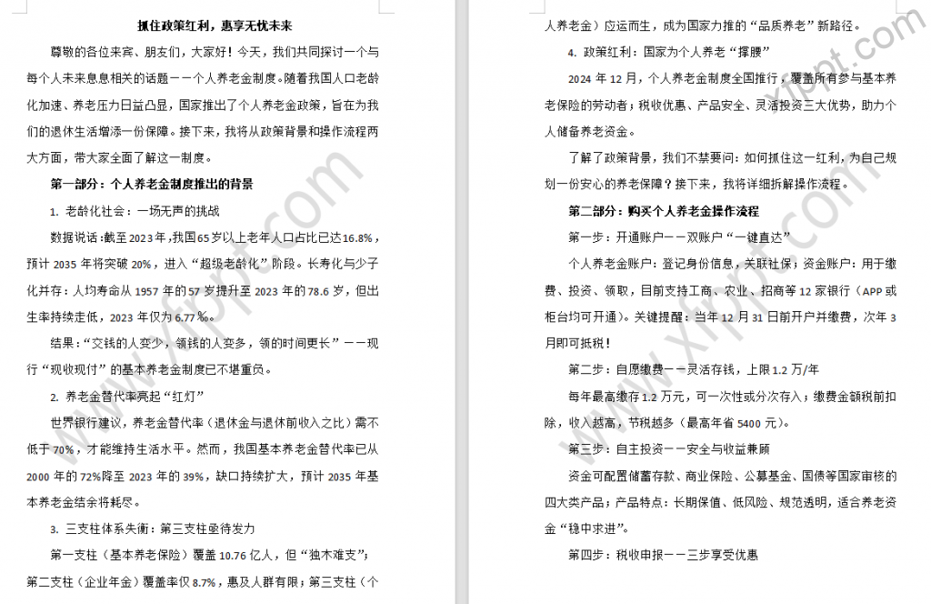 个人养老金制度推出背景24页(含演讲稿) 2025-05-02 基础 430 感谢【Allen】共享。如有侵权,请提供对应版版权作品登记材料,联系本站删除。 资源下载下载价格一年VIP专享仅限一年VIP下载升级一年VIP请先登录支持手机及电脑端下载 0