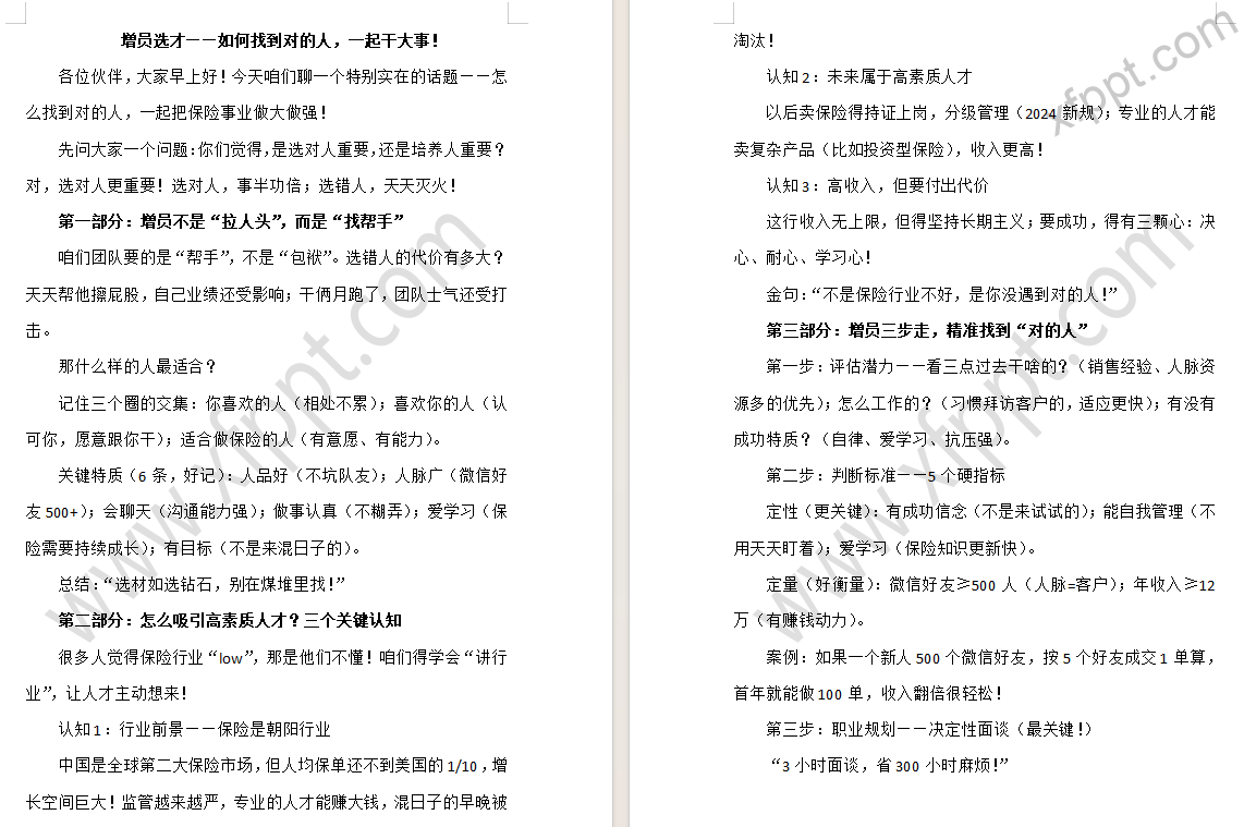 个险增员选才观念吸引高素质人才三大步骤45页(含演讲稿) 2025-08-19 增员 507 感谢【海海】共享。如有侵权,请提供对应版版权作品登记材料,联系本站删除。 资源下载下载价格一年VIP专享仅限一年VIP下载升级一年VIP请先登录支持手机及电脑端下载 0