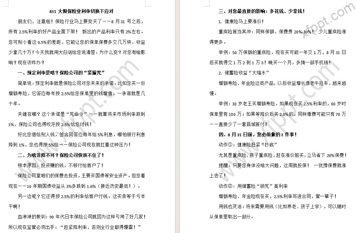831大限保险业利率切换下应对13页(含演讲稿) 2025-08-19 理财险 430 感谢【小豆豆】共享。如有侵权,请提供对应版版权作品登记材料,联系本站删除。 资源下载下载价格一年VIP专享仅限一年VIP下载升级一年VIP请先登录支持手机及电脑端下载 0