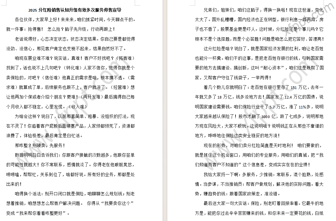 2025分红险销售认知升级停售宣导16页(含演讲稿) 2025-08-21 理财险 443 感谢【丽丽】共享。如有侵权,请提供对应版版权作品登记材料,联系本站删除。 资源下载下载价格一年VIP专享仅限一年VIP下载升级一年VIP请先登录支持手机及电脑端下载 0