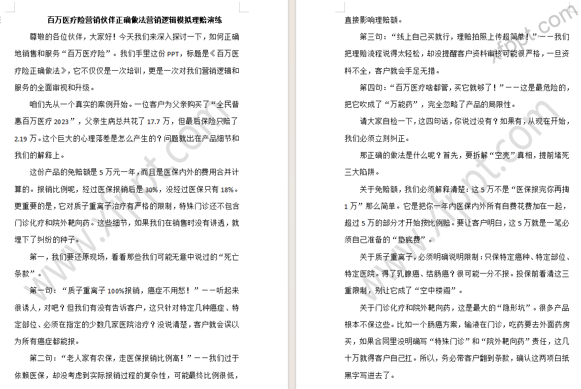 百万医疗险营销伙伴正确做法营销逻辑理赔20页(含演讲稿) 2025-08-26 健康险 394 感谢【豆豆】共享。如有侵权,请提供对应版版权作品登记材料,联系本站删除。 资源下载下载价格一年VIP专享仅限一年VIP下载升级一年VIP请先登录支持手机及电脑端下载 0