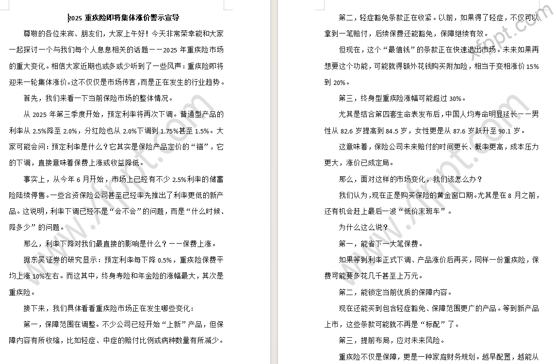 2025重疾险即将集体涨价警示宣导11页(含演讲稿) 2025-09-06 健康险 407 感谢【娟儿】共享。如有侵权,请提供对应版版权作品登记材料,联系本站删除。 资源下载下载价格一年VIP专享仅限一年VIP下载升级一年VIP请先登录支持手机及电脑端下载 0