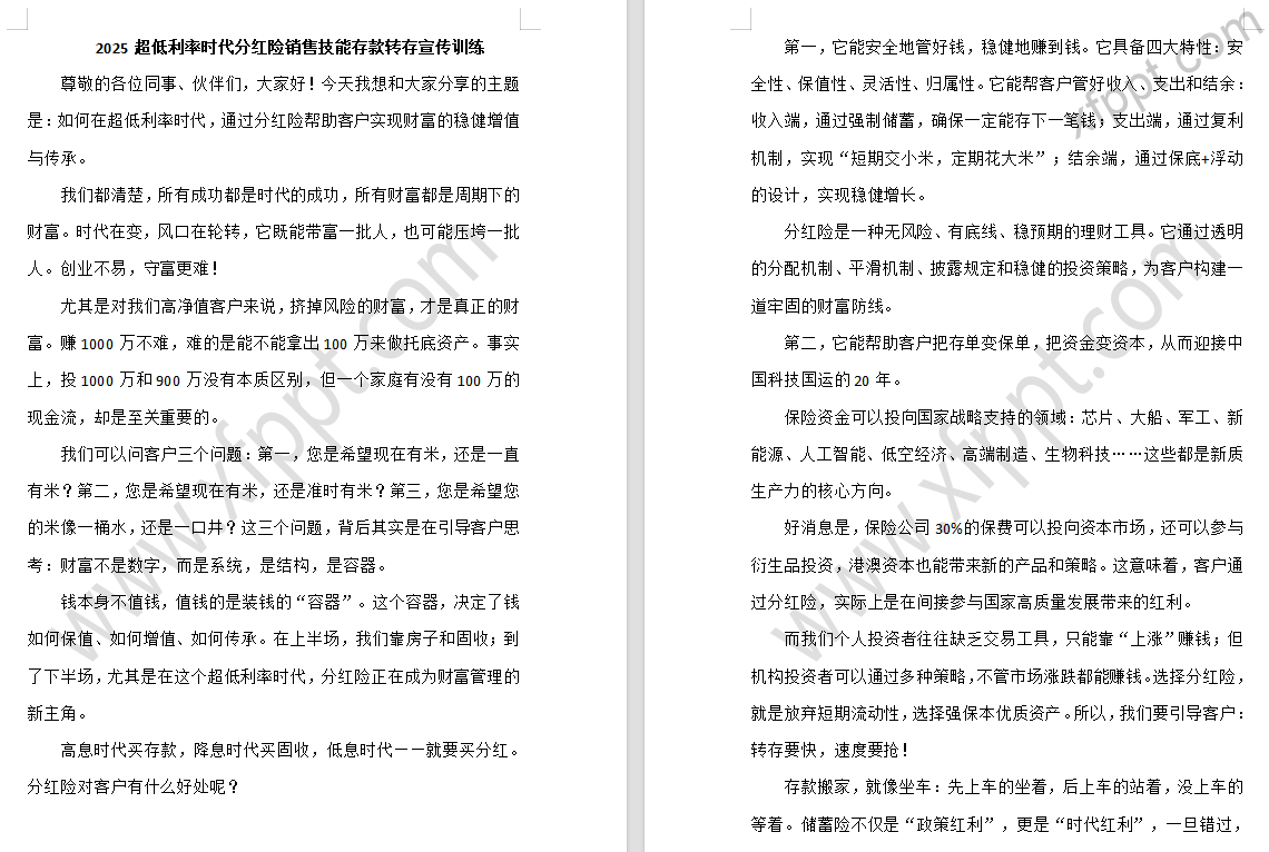 2025超低利率时代分红险销售技能21页(含演讲稿) 2025-09-14 理财险 549 感谢【小香香】共享。如有侵权,请提供对应版版权作品登记材料,联系本站删除。 资源下载下载价格一年VIP专享仅限一年VIP下载升级一年VIP请先登录支持手机及电脑端下载 0