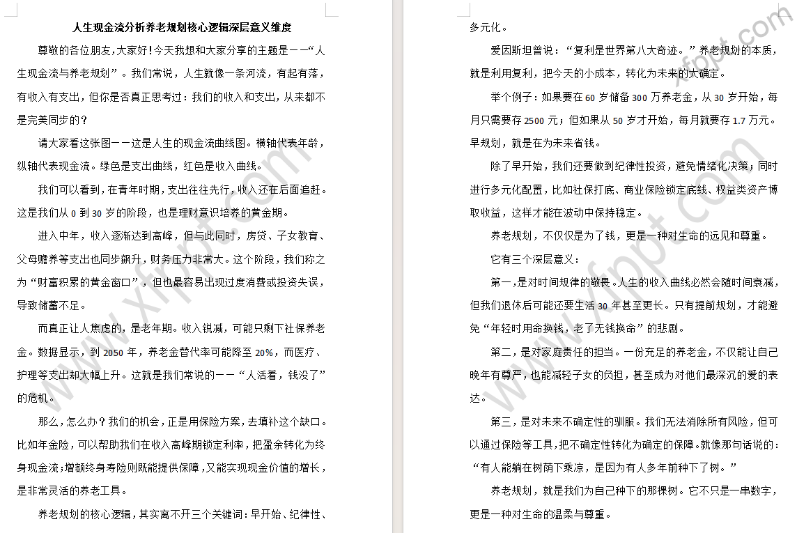人生现金流分析养老规划核心逻辑深层意义19页(含演讲稿) 2025-09-21 理财险 407 感谢【Allen】共享。如有侵权,请提供对应版版权作品登记材料,联系本站删除。 资源下载下载价格一年VIP专享仅限一年VIP下载升级一年VIP请先登录支持手机及电脑端下载 0