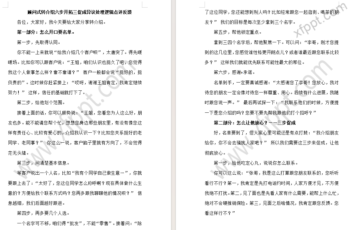 顾问式转介绍六步开拓三促成异议处理逻辑21页(含演讲稿) 4周前 基础 72 感谢【月儿】共享。如有侵权,请提供对应版版权作品登记材料,联系本站删除。 资源下载下载价格一年VIP专享仅限一年VIP下载升级一年VIP请先登录支持手机及电脑端下载 0